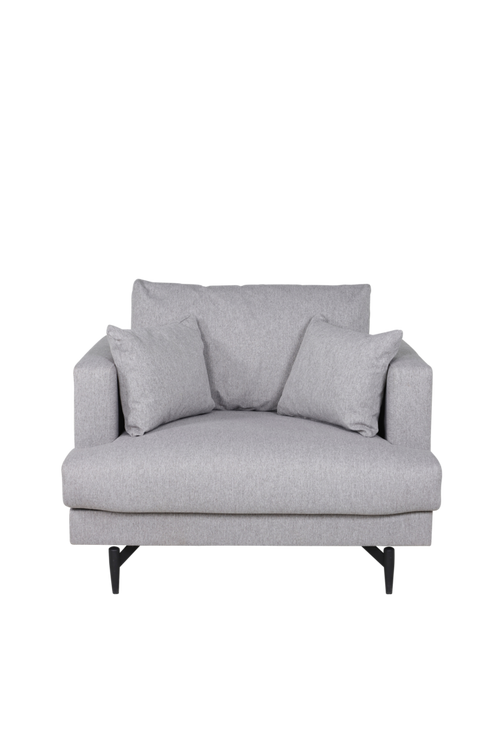 Sofia är en fåtölj med klädsel i polyester och ben i metall. Fåtöljens mått: Sitthöjd: 44,5 cm, Sittbredd: 106 cm, Sittdjup: 58 cm. Fåtöljen kräver enklare montering.