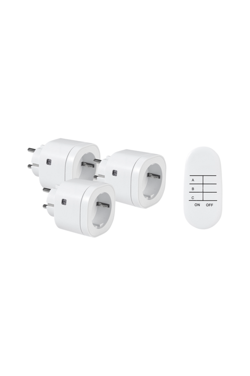 3-pack fjärrströmbrytare för inomhusbruk. Max belastning 3000W. Standbyenergiåtgång