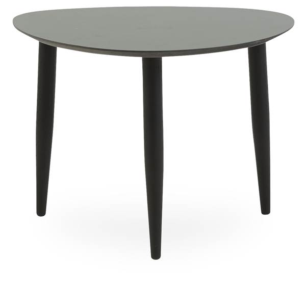 Soffbord, ingen hylla. – Laminat Mossgrön, svart kant MDF och lackerade ben i svartbetsad massiv ek