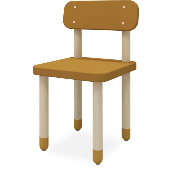 Barnstol, ej stapelbar och med ryggstöd. – Mustard MDF och ben i massiv ask