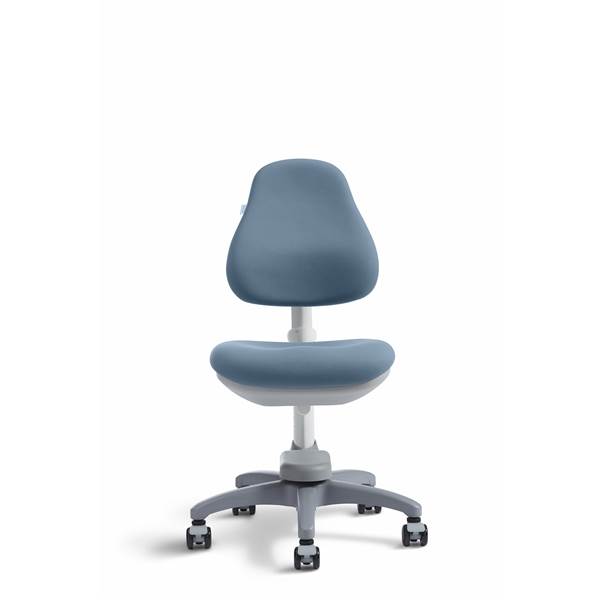 Kontorsstol, höjdjustering. – Frosty Blue polyestertyg och vit stomme i metall