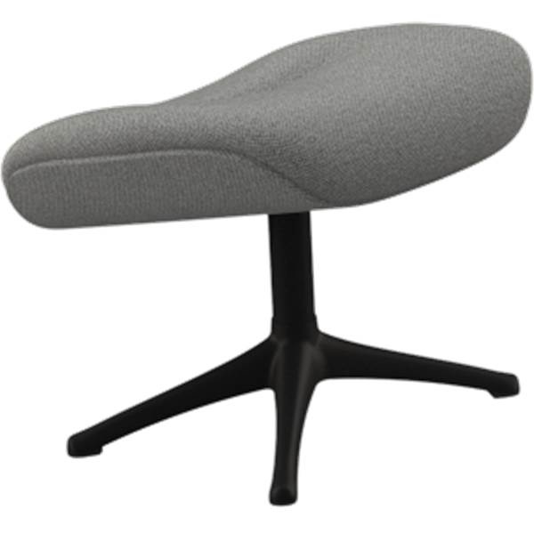 Fotpall, formstöpt kallskum. – Denno 1260 Slate Grey textil, skal helstoppat och sockel i svartlackerad aluminium