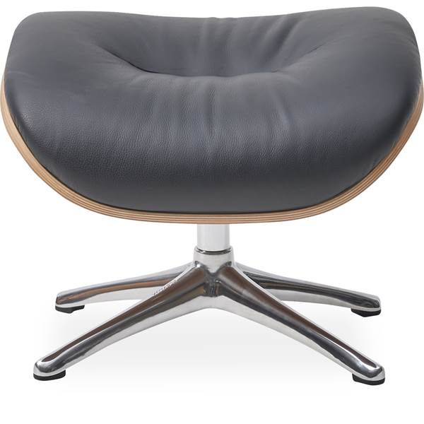 Fotpall, formstöpt kallskum. – Savoy 0960 Platin Black semianilin läder och skal i valnötsfaner