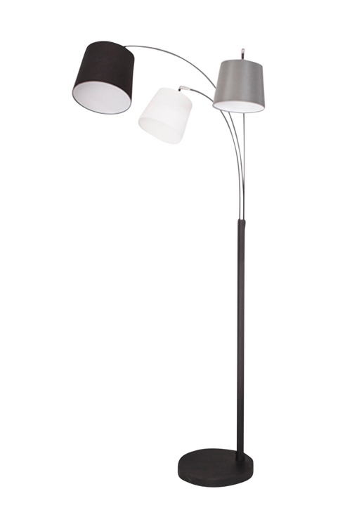 Foggy är en golvlampa med 175 cm höjd och totalt 32 cm bred. På den enkla basen sitter tre armar i olika längd med 3 st skärmar i olika mått med blandade färgställningar i tonerna grå, svart och vit. Golvlampan blir dekorativ vid din soffa eller favoritfåtölj. Max 25W. Sladdlängd 250 cm med brytare på sladden. Ljuskälla ingår ej.