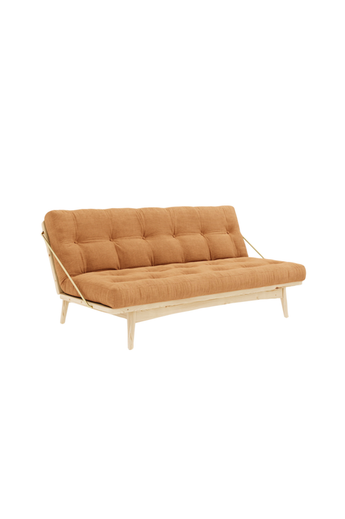 Hygge . Haka av . Relaxa Folk är en förening av mjuka, rundade kanter och coola, rena linjer. Stommen är tillverkad av massiv furu och förkroppsligar enkelheten i skandinavisk design. Armstöden av metall står i kontrast till stommens mjuka linjer och bekräftar att Folk är mycket mer än bara en bekväm soffa. Folk bäddsoffa är inte bara ett ställe att mysa med vänner utan också en praktisk säng för små studentlägenheter eller gästrum. Funktionell men ändå elegant. Med ett enkelt drag hakar armstöden av och förvandlar soffan till en säng för två. Soffan Folk ur vår kollektion med manchestertyg kommer bli blickfånget i alla rum.