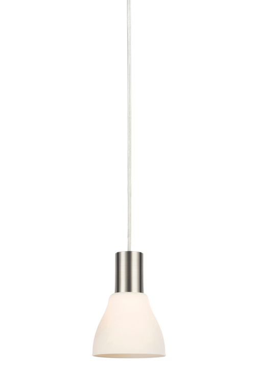 Fönsterpendel i metall och vit glasskärm 9 cm i diameter och höjd 13 cm.. 3,5m kabel med strömbrytare på sladden. Max 1x40W. E14-sockel.