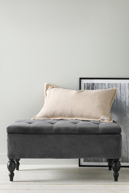 Förvaringsbänk med klädsel i polyestersammet och trästomme. Stoppning av polyeter. Träben. Förvaringsutrymme i bänken, uppfällbart lock med gångjärn och gasfjädrar som gör att locket öppnas och stängs mjukt och dämpat utan klämningsrisk. Bredd 80 cm, djup 40 cm, höjd 40 cm. Lev. monterad. Vill du titta närmare på ett tyg och känna på kvaliteten innan du väljer klädsel? Mejla oss på info@ellos.se eller ring 033-33000 och beställ hem ett gratis tygprov! Ange det artikelnummer som står framför den färg du önskar.