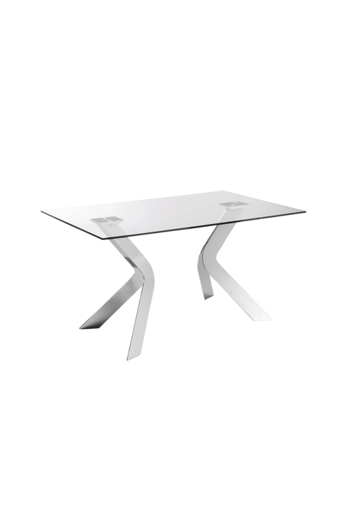 Bord med kromade stålben. Bordsskiva av härdat glas.