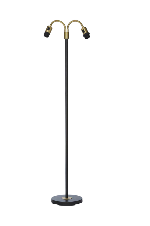 Golvlampa Amy i metall ingår i en serie lampor i olika format och utförande. Övre delen på golvlampan har två armar som är justerbara och har E27 lamphållare, max 40W, samt strömbrytare. Passar till toppringsskärm med E27 fäste. Höjd 150 cm. 190 cm lång sladd med väggkontakt. Ljuskälla köpes separat.