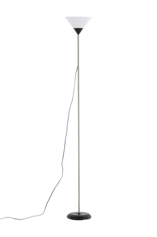 Batang golvlampa i metall och plast med en ljuskälla. Enklare montering krävs. Ljuskälla ingår ej.