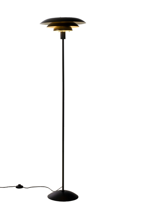 Golvlampan Epsilon har en klassisk design med tre sammansatta skärmar i svartlackerad metall som fördelar ljuset på ett fint sätt och motverkar bländning. Strömbrytaren är bekvämt placerad på lamphållaren så du lätt kommer åt att tända och släcka. Med Epsilon medföljer dubbla uppsättningar dekorringar och knoppar, välj mellan krom eller matt mässing beroende på vad som passar bäst i just ditt hem. Epsilon golvlampa kan även kombineras med andra lampor i Epsilon-familjen.