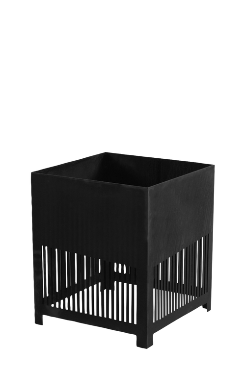 Inspirationen till denna lampa för utomhusbruk ser vi i vår samtids moderna ladhus med sitt strama uttryck i skandinavisk ton. Lampan är tillverkad i polen av 1,5 mm tjock cortenstål som är ett vädertåligt och underhållsfritt material med lång livslängd. Lampan levereras i en behandlad och målad pulverlackerad svart kulör. Upptill finns en odlingslåda med dräneringshål där möjlighet ges att plantera växter för ett stämningsfullt lummigt intryck. Ljuskällan monteras högst upp på undersidan av lampan, under odlingslådan, vilket ger ett nedåtriktat ljus som sprider sig mot marken och skapar ett vackert skuggspel tack vare de laserskurna lamellerna i cortenstålet. Obs! Belysning medföljer ej, sladdställ för utomhusbruk och ljuskälla säljes separat. Vid utomhusbruk bör åtminstone ett ip44-klassificerat sladdställ användas till denna armatur. Design: erika norén. Bredd: 35 djup: 35 höjd: 40 (cm). Lamphållare: 1xe27 ringfäste.