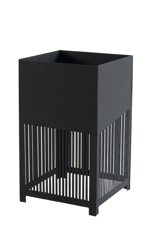 Inspirationen till denna lampa för utomhusbruk ser vi i vår samtids moderna ladhus med sitt strama uttryck i skandinavisk ton. Lampan är tillverkad i polen av 1,5 mm tjock cortenstål som är ett vädertåligt och underhållsfritt material med lång livslängd. Lampan levereras i en behandlad och målad pulverlackerad svart kulör. Upptill finns en odlingslåda med dräneringshål där möjlighet ges att plantera växter för ett stämningsfullt lummigt intryck. Ljuskällan monteras högst upp på undersidan av lampan, under odlingslådan, vilket ger ett nedåtriktat ljus som sprider sig mot marken och skapar ett vackert skuggspel tack vare de laserskurna lamellerna i cortenstålet. Obs! Belysning medföljer ej, sladdställ för utomhusbruk och ljuskälla säljes separat. Vid utomhusbruk bör åtminstone ett ip44-klassificerat sladdställ användas till denna armatur. Design: erika norén. Bredd: 35 djup: 35 höjd: 60 (cm). Lamphållare: 1xe27 ringfäste