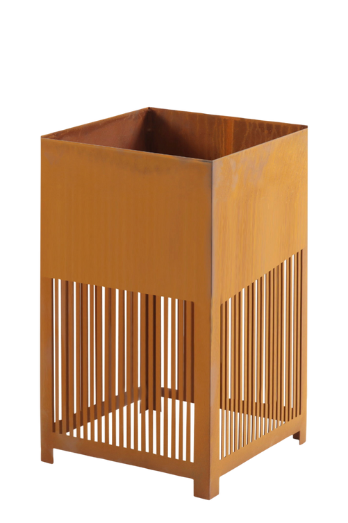 Inspirationen till denna lampa för utomhusbruk ser vi i vår samtids moderna ladhus med sitt strama uttryck i skandinavisk ton. Lampan är tillverkad i polen av 1,5 mm tjock cortenstål som är ett vädertåligt och underhållsfritt material med lång livslängd. Lampan levereras i en behandlad och målad pulverlackerad svart kulör. Upptill finns en odlingslåda med dräneringshål där möjlighet ges att plantera växter för ett stämningsfullt lummigt intryck. Ljuskällan monteras högst upp på undersidan av lampan, under odlingslådan, vilket ger ett nedåtriktat ljus som sprider sig mot marken och skapar ett vackert skuggspel tack vare de laserskurna lamellerna i cortenstålet. Obs! Belysning medföljer ej, sladdställ för utomhusbruk och ljuskälla säljes separat. Vid utomhusbruk bör åtminstone ett ip44-klassificerat sladdställ användas till denna armatur. Design: erika norén. Bredd: 35 djup: 35 höjd: 60 (cm). Lamphållare: 1xe27 ringfäste