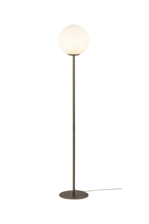 Molekyl golvlampa med lampfot i metall och glaskupol. Lampan är 130 cm hög och huvudmaterialet är metall/glas. Max effekt 30W. Lampan slås på och av med en 1,9 meter strömbrytare. Ljuskälla ingår ej.