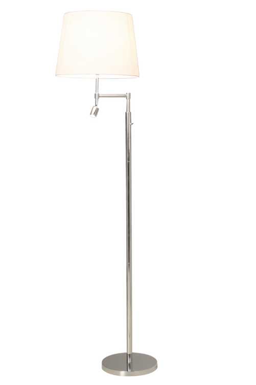 Golvlampa av metall med skärm, skärmens höjd 26 cm och diameter 36 cm. Höjd 157 cm. LED 3W ingår. E27 , ingår ej. Separata brytare. Transparent kabel 200 cm.