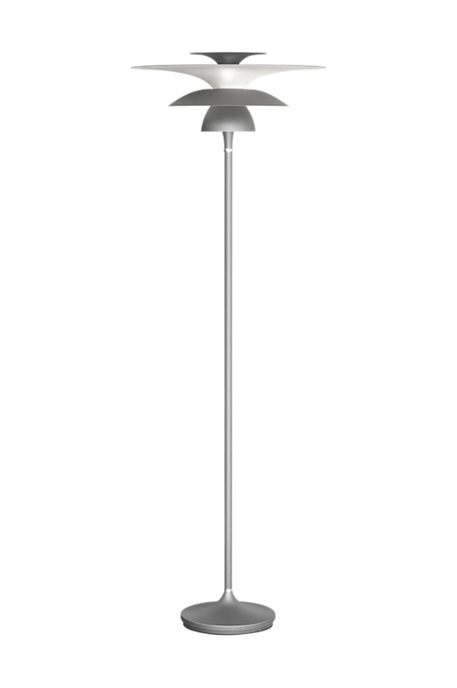 Picasso familjen består av pendlar, bords- och golvlampa. För att golvlampan ska kunna passa in i hemiredningen under flera år, har vi valt att hålla designen enkel och elegant. Picasso´s metallskärmar i olika storlekar ger ett vackert ljus. Passar i ditt vardagsrum eller sovrum. Ljuskälla ingår ej. Sockel G9. 10 watt. IP20. Dimbar. Svart textil sladd, längd 1,7m. Brytare på sladd. Höjd 148,6cm och diameter 50cm. Klass II. Designer Joakim Fihn. Tillverkad i Varberg, Sverige.