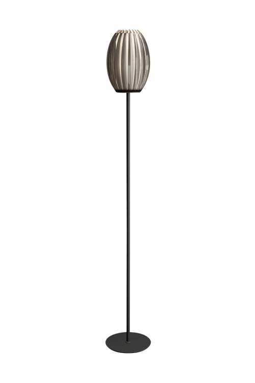 Tentacle har en karismatisk och unik design. Skärmen med lamellerna skapar ett dekorativt sken som passar perfekt i de flesta rum. Ljuskälla ingår ej. Sockel E27. 60 watt. Svart textilsladd, längd 2m. Brytare på sladd. Höjd 165cm, diameter skärm 21cm och diameter lampfot 25cm. IP20. Klass II.