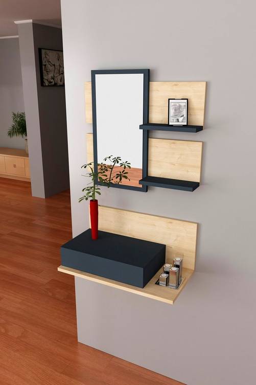Material: 100% Melaminbelagd spånskiva Sideboard Mått: 31,3 x 60 x 27,5 cm Mirror Mått: 14,2 x 60 x 60 cm