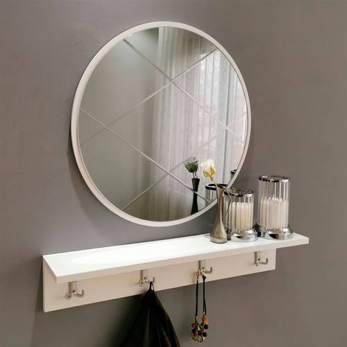 Material: 100% Melaminbelagd spånskiva Vägghylla Mått: 80 x 15 x 15 cm Mirror Diameter: 60 cm