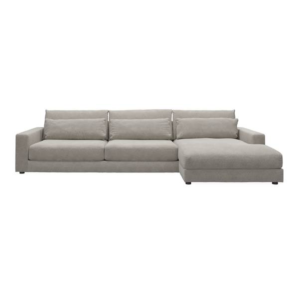 3 sits högervänd Soffa med schäslong, siddehøjde 42 cm. – Skyland 40 ljusgrått tyg och ben i svart plast
