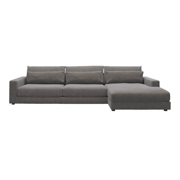 3 sits högervänd Soffa med schäslong, siddehøjde 42 cm. – Rate 108 Wood textil och ben i svart plast
