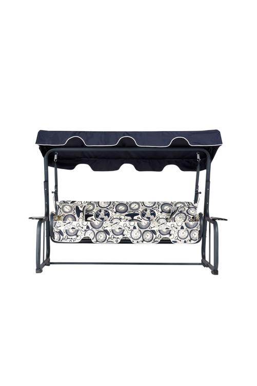 Ram: 100% METALL Tyg: 100% POLYESTER 18 DNS skumplast i sittdynan Lättvättat tyg Stol, mått: 50 x 190 cm Totala mått: 200 x 110 x 165 cm Kapacitet: 320 kg