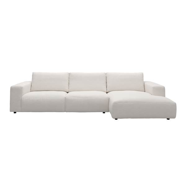 3 sits högervänd Soffa med schäslong, . – Picasso Natur klädsel, ben i svart plast och S:skum/fib/din/sili R:Dun/skum