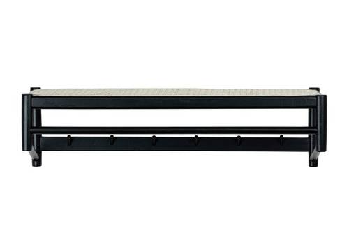 Hatthylla i massiv ek och rotting. 6 krokar samt stång för galgar.