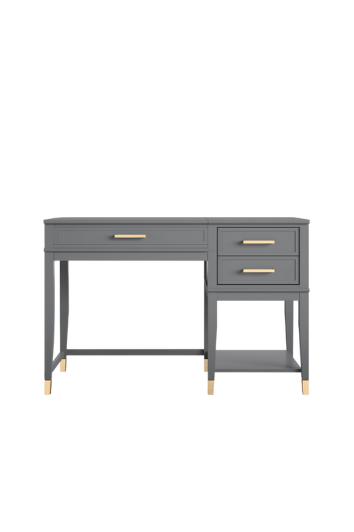 Arbeta med stil vid det höj- och sänkbara skrivbordet Westerleigh Lift Desk från CosmoLiving by Cosmopolitan. Det har trendiga guldfärgade detaljer samt två rymliga lådor. Men det bästa är att bordsskivan går att lyfta upp, så att du kan jobba både sittande och stående. Det här glamorösa skrivbordet finns i många olika färger.