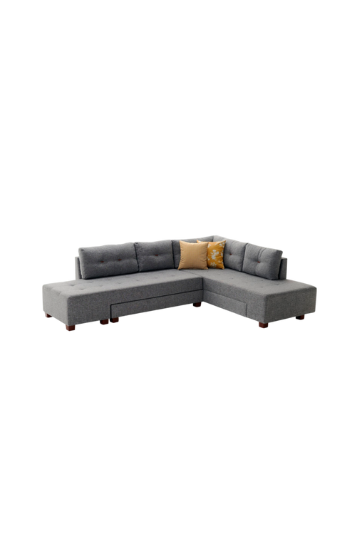 Stomme: TRÄ / SPÅNSKIVA Tyg: 100% POLYESTER Mått: 280 x 85 x 206 cm Säng, mått: 150 x 190 cm 32 DNS skumplast i sittdynan Ryggstöd delvis av skumplast Ben av hårdplast i färgen Valnöt Lättvättat tyg