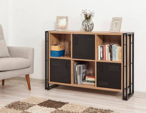 Material: 100% Melaminbelagd spånskiva Metallram (Tjocklek: 2 cm) Metallplaterade dörrar Metallhandtag Mått: 136 x 89 x 35 cm