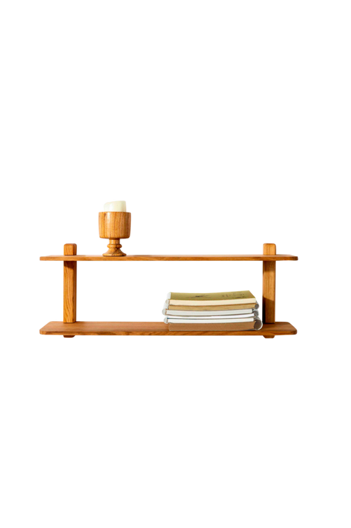 Elegant hylla som ger ett flytande intryck. Rundade hörn. Hyllan är tillverkad av massiv ek i kvalitet B/C. Behandlad med olja i naturfärg. Mått 64x16x25 cm (LxDxH) Tillverkad i EU, FSC-certifierat trä