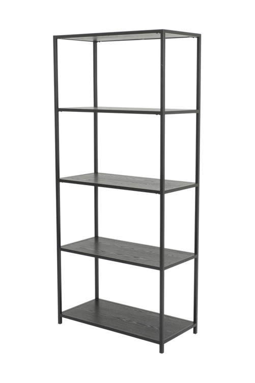 Hylla i lackad askfaner och metall. Bredd 84 cm, djup 40 cm och höjd 188 cm. Montera själv.