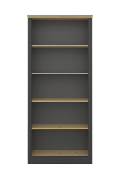 Hyllenhet med sockel och 4 justerbara hyllplan. Tillverkad i lackerad MDF med hyllor och topp i massiv tall i en färgad och lackerad yta. Enkel självmontering.