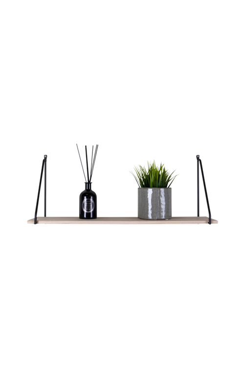 Hylla med ram och en hylla i naturträ. Material: stål, trä