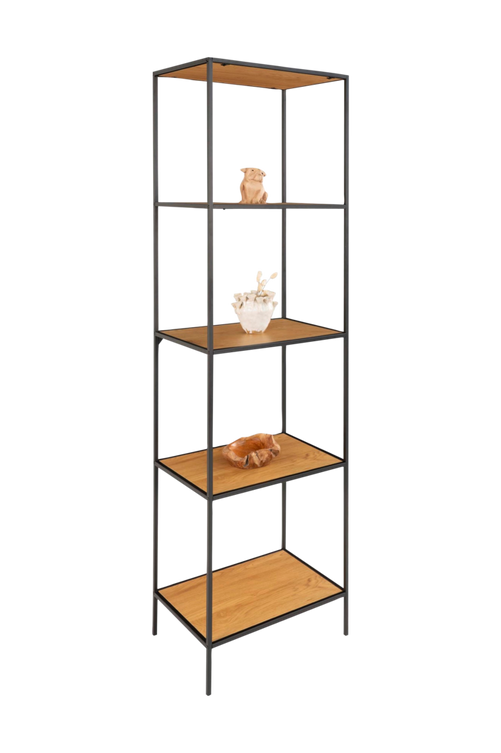 Hylla Vita. 5 ekhyllplan med ram i svart.