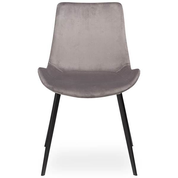 matstol, maxbelastning 120 kg och siddehøjde 47 cm. – Sits i aluminiumfärgad sammet och ben i svartlackerad metall
