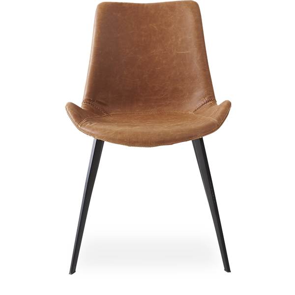 matstol, maxbelastning 120 kg och siddehøjde 47 cm. – Sits i brunt konstläder och ben i svartlackerad metall