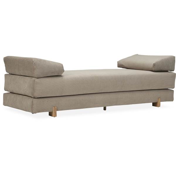 Bäddsoffa, och siddehøjde 44 cm. – Cordufine 318 Beige stof, pocketspring/kallskum madrass och ben i ekträ