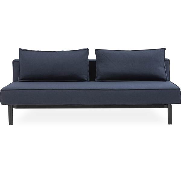 Bäddsoffa, pocketfjädrar, med förvaring, och siddehøjde 41 cm. – Mixed Dance 528 Blue och svarta ben