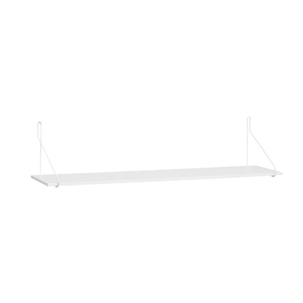 Vägghylla, maxbelastning 5 kg. per hylla. – Sidor i vitlackerad metall och hylla i vit melamin