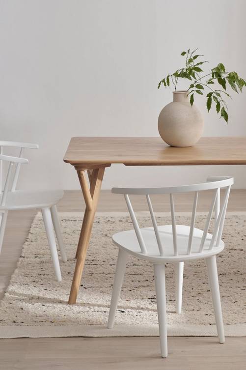 Karmstol av massivt gummiträ. Höjd 76 cm. Bredd 54 cm. Djup 51 cm. Sitthöjd 45 cm. Sittdjup 40 cm. Lev. monterad (endast benen behöver skruvas på vid leverans, inga verktyg krävs).