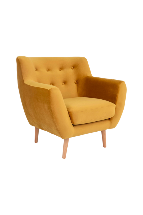 Omonterad karmstol i sammet med ben av trä. 76 x 81 x 79 cm. 18,2 kg