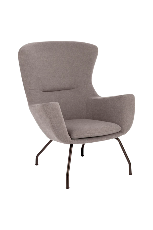 Otilia karmstol, med rundade former och modern design, har stoppning och gråmelerad textilklädsel, som passar till allt. Spillde du ett glas vin? Oroa dig inte, torka bara upp och den fläckavvisande behandlingen sköter resten. Den kommer att se perfekt ut igen. Tyget har mjuk yta och hög rivhållfasthet. Mjuk men stark. Benen är tillverkade av stål med en snygg, originell design. Som balsam för själen. Bredd: 81 cm. Djup: 85 cm. Höjd: 100 cm.