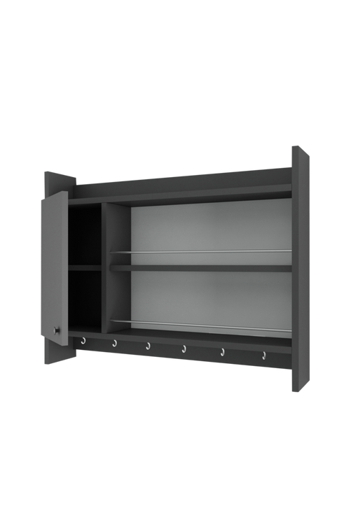 100% SPÅNSKIVA MED MELAMINBELÄGGNING Tjocklek: 18 mm Bredd: 85 cm Djup: 15 cm Höjd: 65 cm Flera hyllplan Kan fästas i väggen