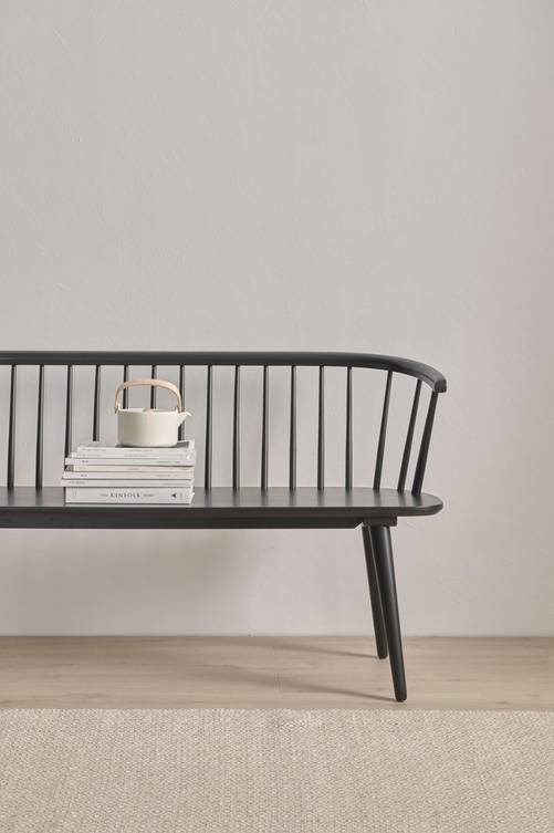 Kökssoffa av massivt gummiträ. Höjd 76 cm, Djup 52 cm, längd 134 cm. Sitthöjd 45 cm, sittdjup 41 cm. Max belastning 220 kg. Benen skruvas på vid leverans.