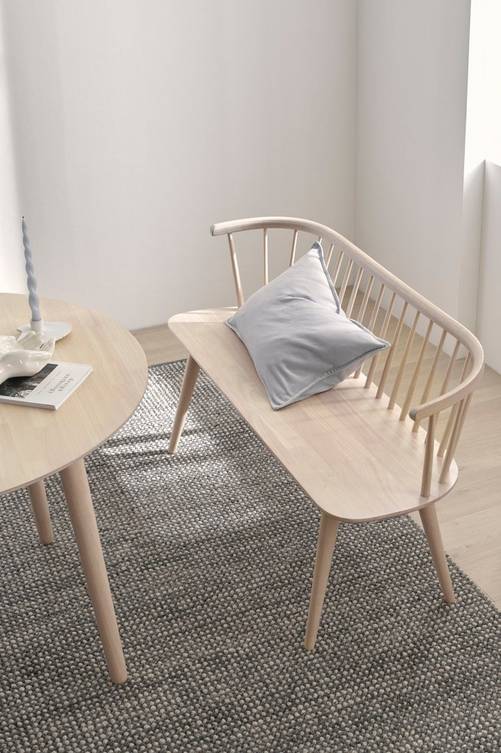 Kökssoffa av massivt gummiträ. Höjd 76 cm, Djup 52 cm, längd 134 cm. Sitthöjd 45 cm, sittdjup 41 cm. Max belastning 220 kg. Benen skruvas på vid leverans.