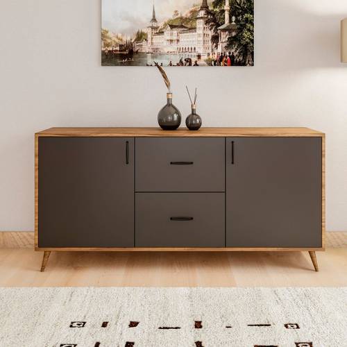 Material: 100% Melaminbelagd spånskiva Teleskopiska lådor Träben Mått: 160 x 77 x 40 cm