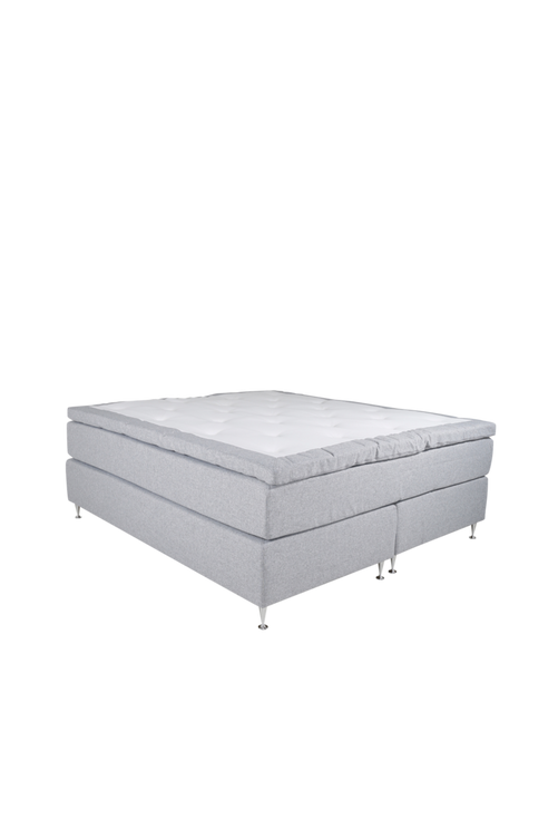 Fjärås, en modern lyxig kontinentalsäng i ett slitstarkt polyestertyg och Fast hårdhet som kommer med ett dubbelt pocketresårsystem. En säng som kommer ge ett maffigt och lyxigt intryck till sovrummet med sin höga höjd och många madrasser, uppbyggd i 3 lager för att ge en god sömn. Sängbottnarna är uppbyggda av en massiv träram i gran med ett fjädersystem i pocket som hjälper till att ge dig rätt avlastning och stöd för hela kroppen. Resårmadrassen är uppbyggd av pocketfjädrar med 7 komfortzoner som är anpassade för att ge maximal avlastning när du sover vare sig du sover på mage, rygg eller sidan. Den pikerade bäddmadrassen är uppbyggd av mickrofibervadd och kallskum som kommer ge dig extra följsamhet. Sammantaget är sängen uppbyggd för att ge en extra skönt sovkomfort som möjligt samt ge ett enhetligt intryck i sin helklädda design. Hela sängen vilar på champangeben i silvrig aluminium. Lättare montering krävs. 10 år på ram och fjäder brott. Sänggavel kan köpas till separat.